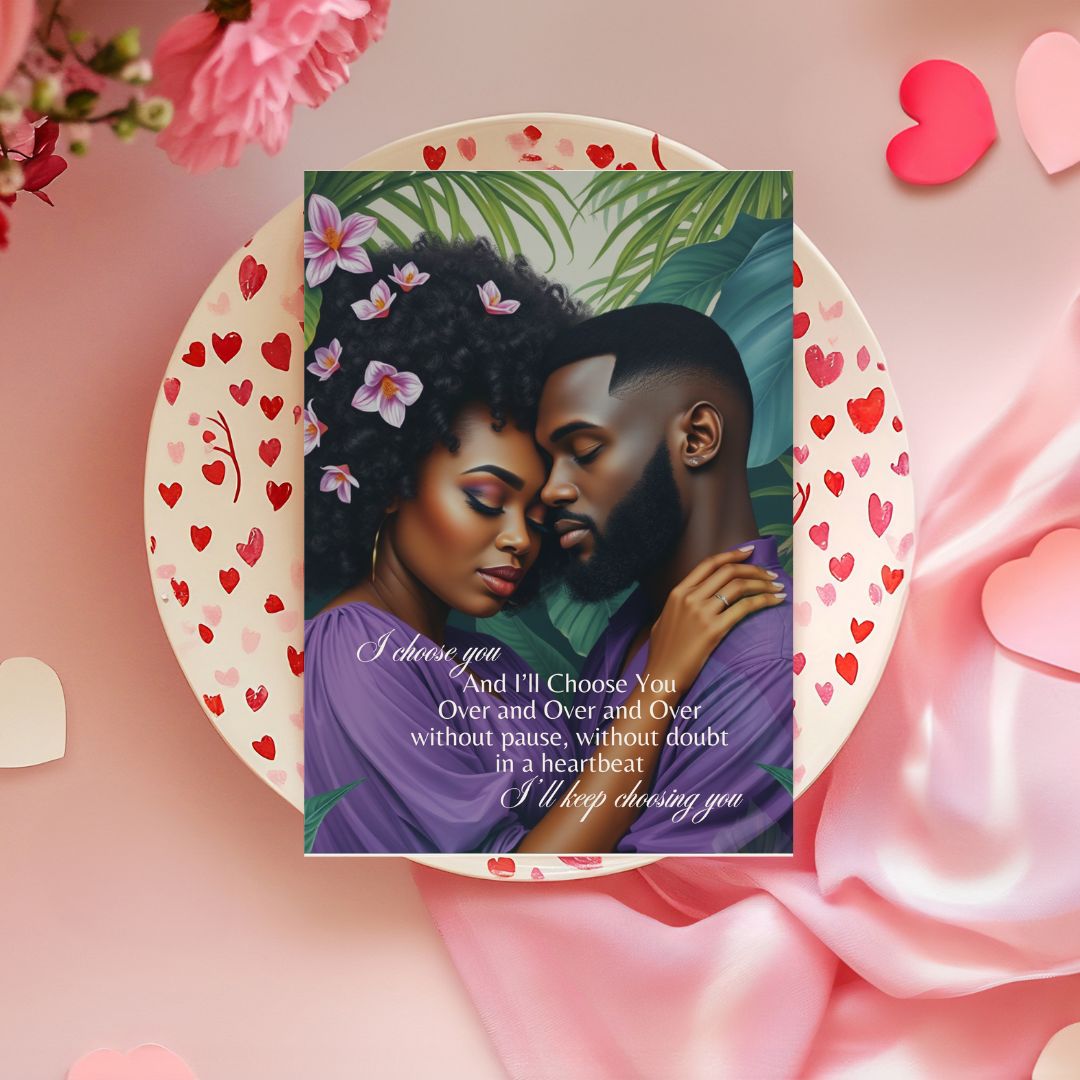 Make a timeless statement with this card featuring the words, “I’ll Choose You Over and Over and Over Without Pause, Without Doubt, in a Heartbeat.” The blank interior invites you to share your unwavering love in your own words.