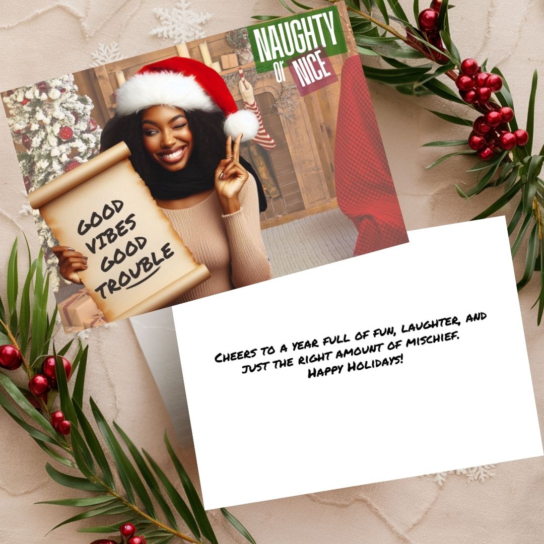 • Inside Message: “Cheers to a year full of fun, laughter, and just the right amount of mischief. Happy Holidays!”